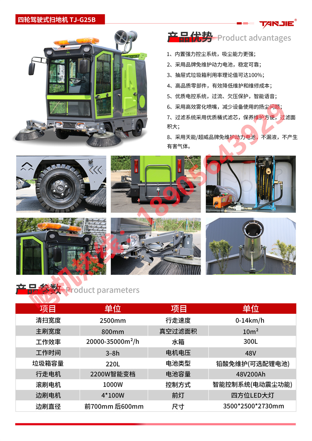 白山坦洁四轮全封闭扫地机TJ-G25B