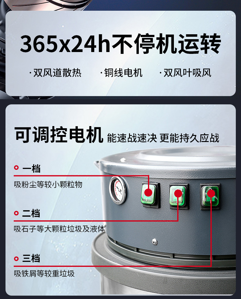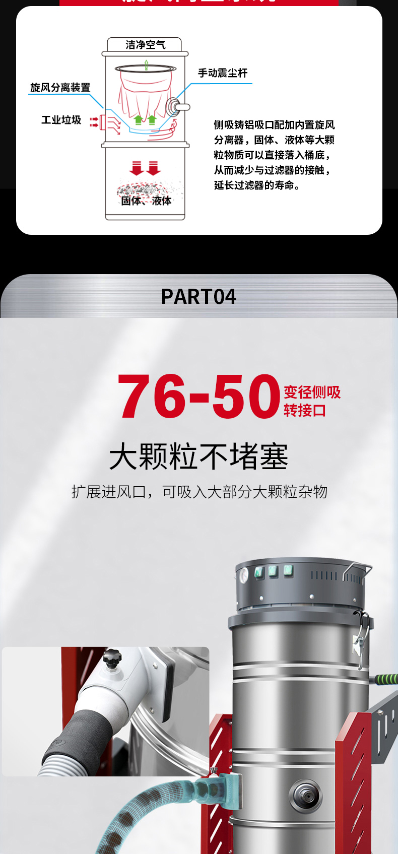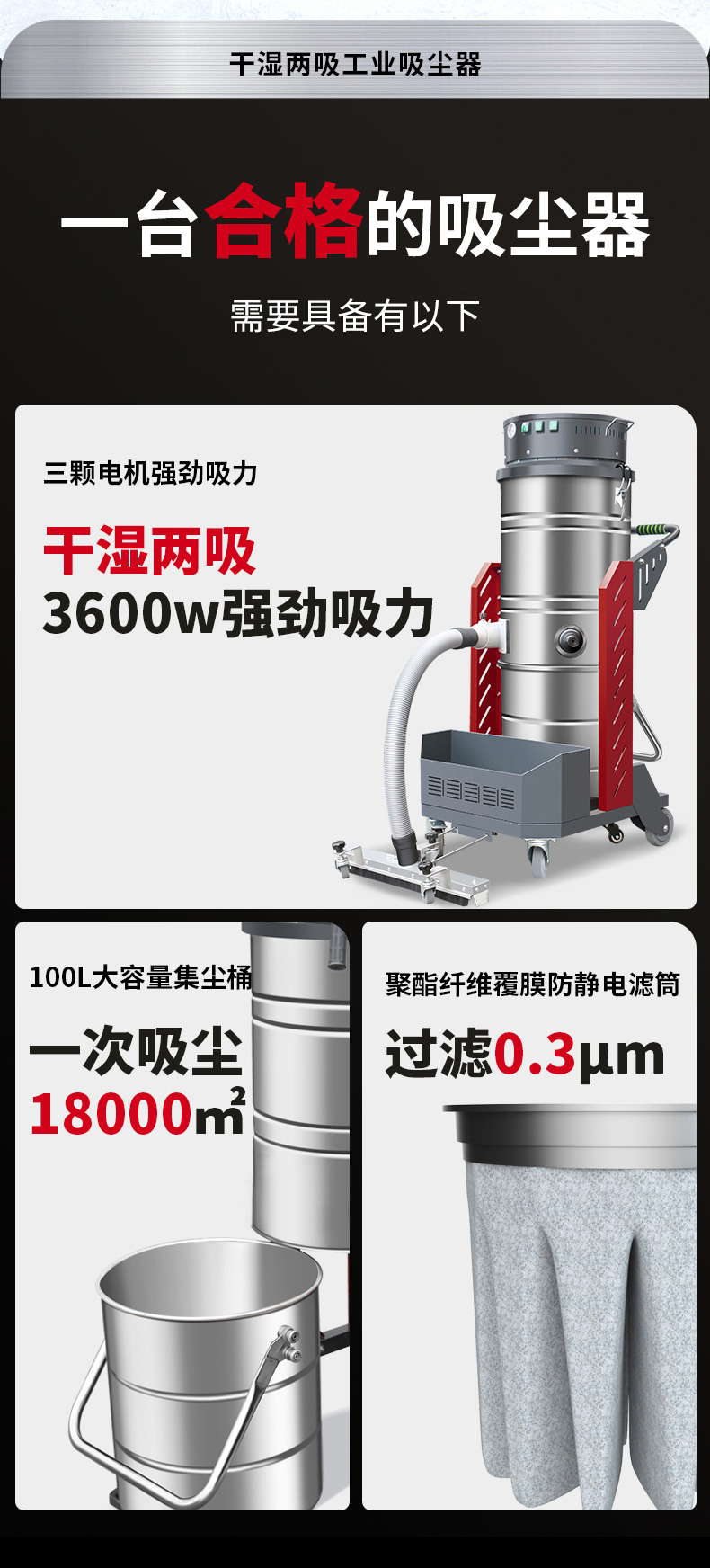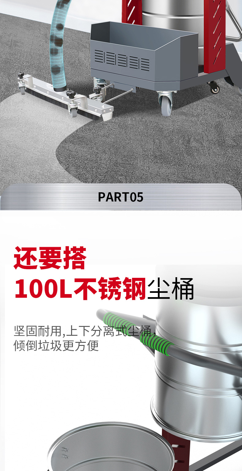 白山坦洁380V双桶不锈钢工业吸尘器X7系列
