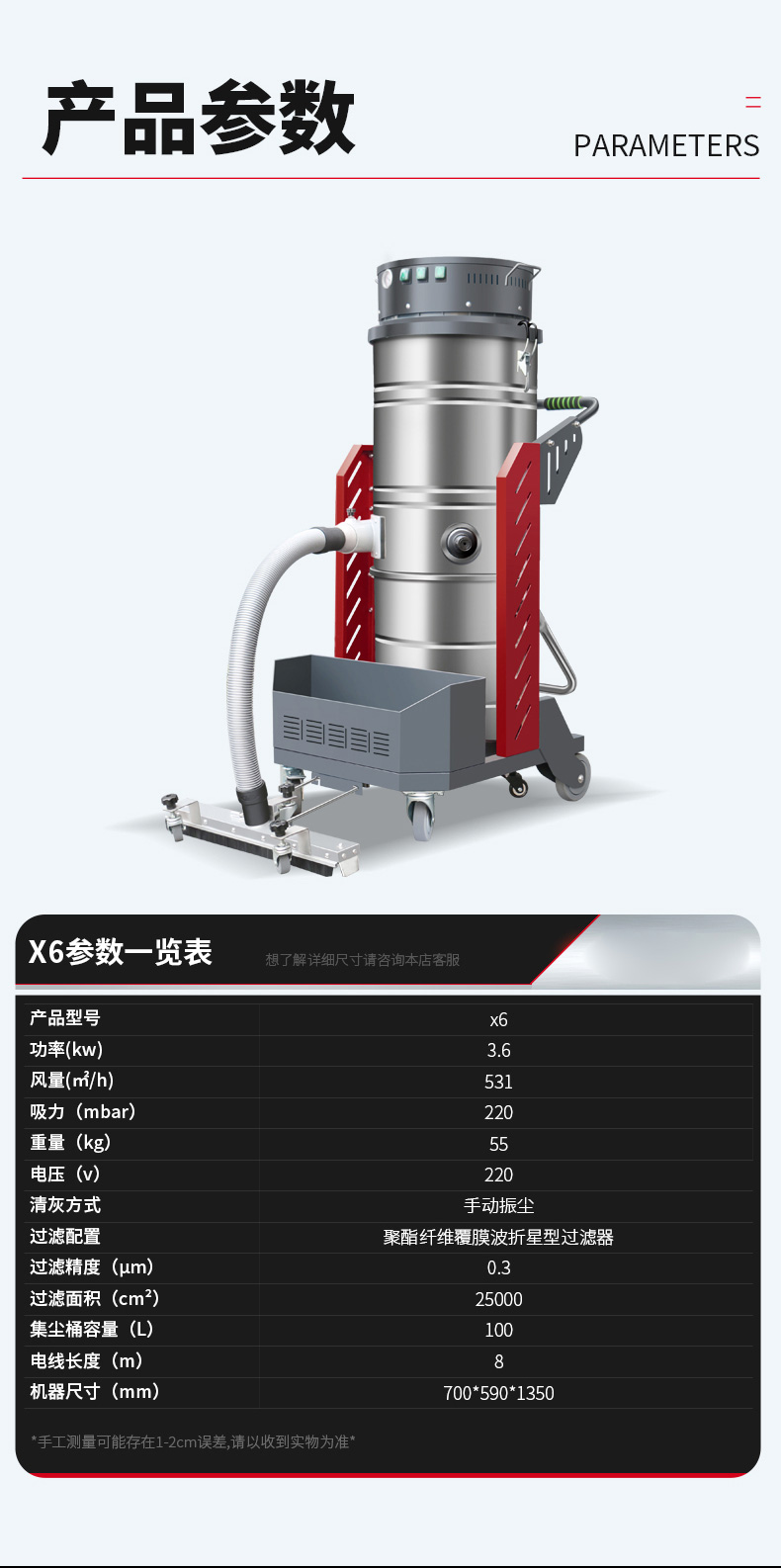 白山坦洁220V单桶不锈钢工业吸尘器X6系列
