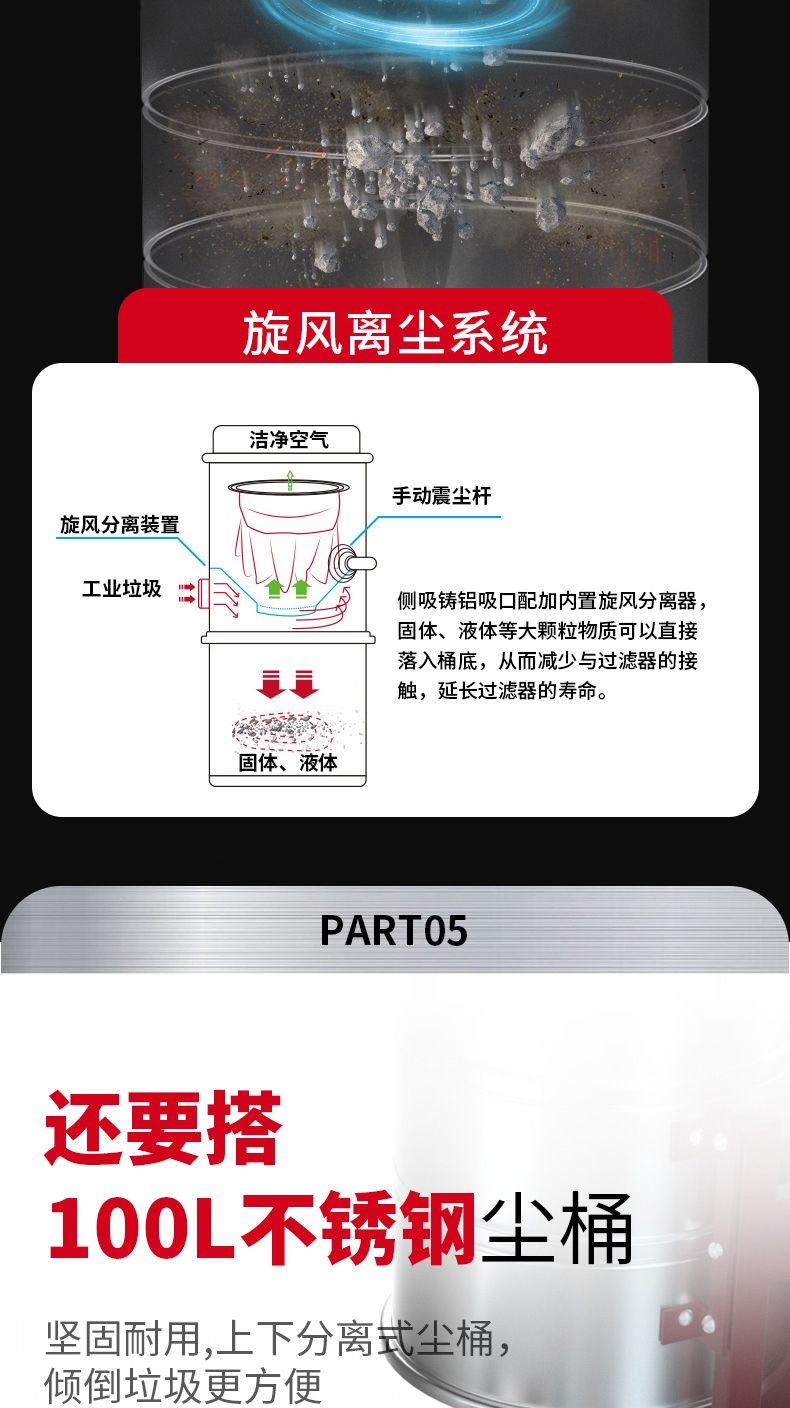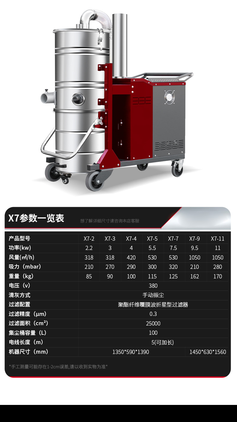 白山坦洁380V双桶不锈钢工业吸尘器X7系列