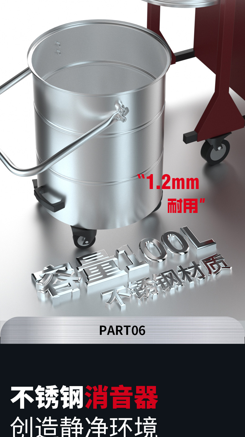 白山坦洁220V单桶不锈钢工业吸尘器X6系列