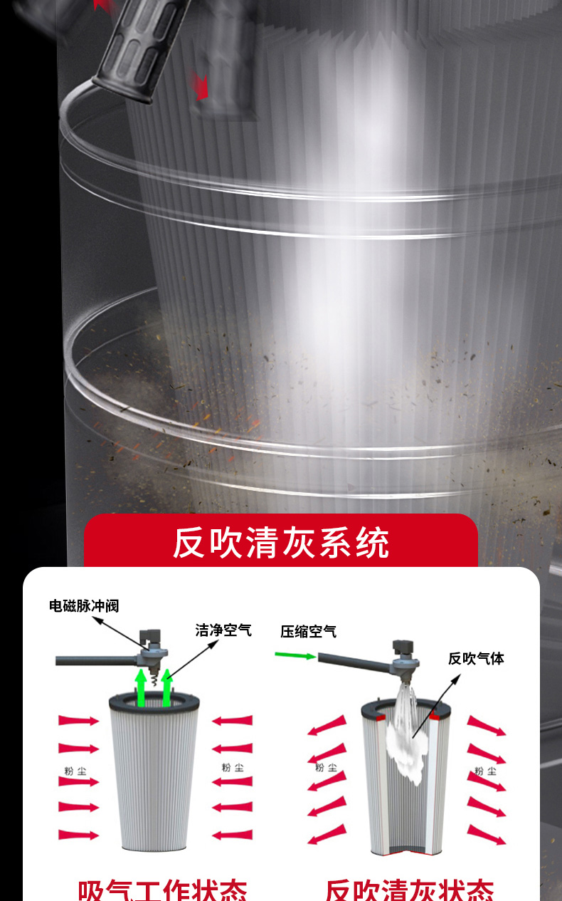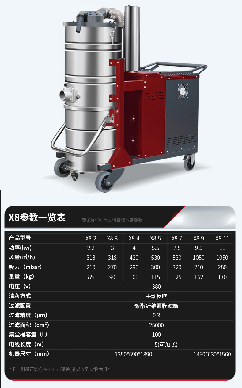白山坦洁380V 双桶手动反吹工业吸尘器X8系列