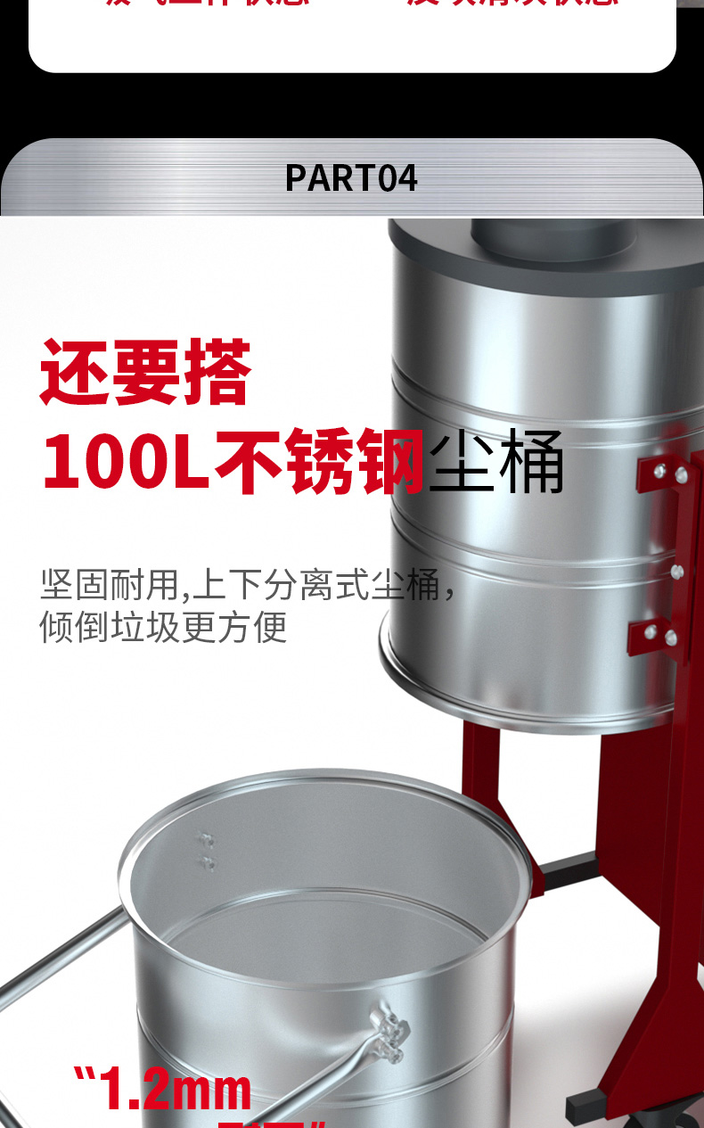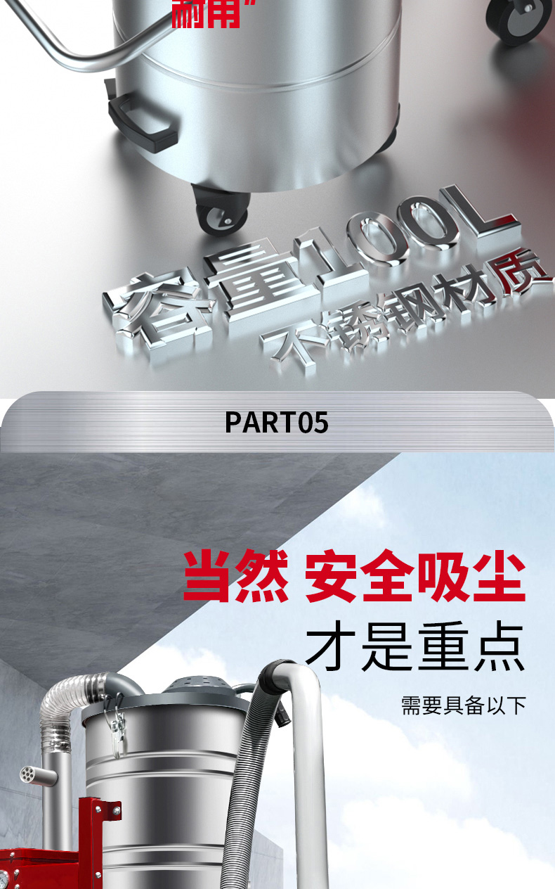 白山坦洁380V双桶不锈钢工业吸尘器X7系列