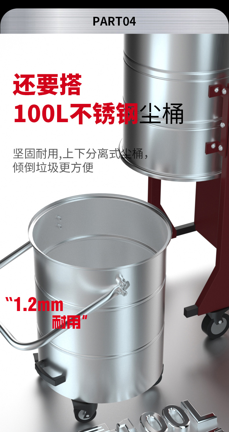 白山坦洁380V双桶不锈钢工业吸尘器X7系列